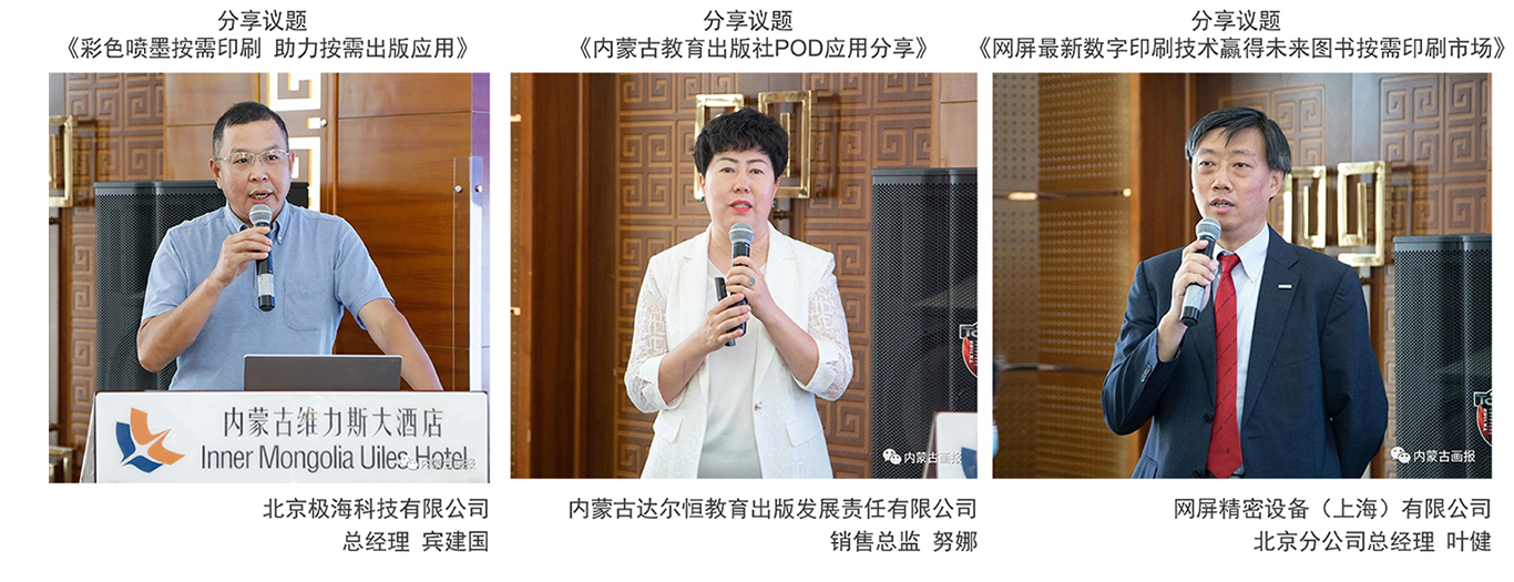 會議由內蒙古出版集團、內蒙古達爾恒教育出版發(fā)展責任有限公司、北京中科印刷有限公司、網屏精密設備(上海)有限公司、北京極??萍加邢薰?/span>聯合主辦。來自全國幾十家出版企業(yè)的代表及內蒙古出版界的領導和嘉賓們出席了本次活動。出版界同仁們齊聚一堂共同探討按需印刷、按需出版新技術、新應用;深入了解出版機構POD技術應用的情況以及遇到的問題和感觸;思考未來后疫情時代的發(fā)展方向,更好適應時代變化。